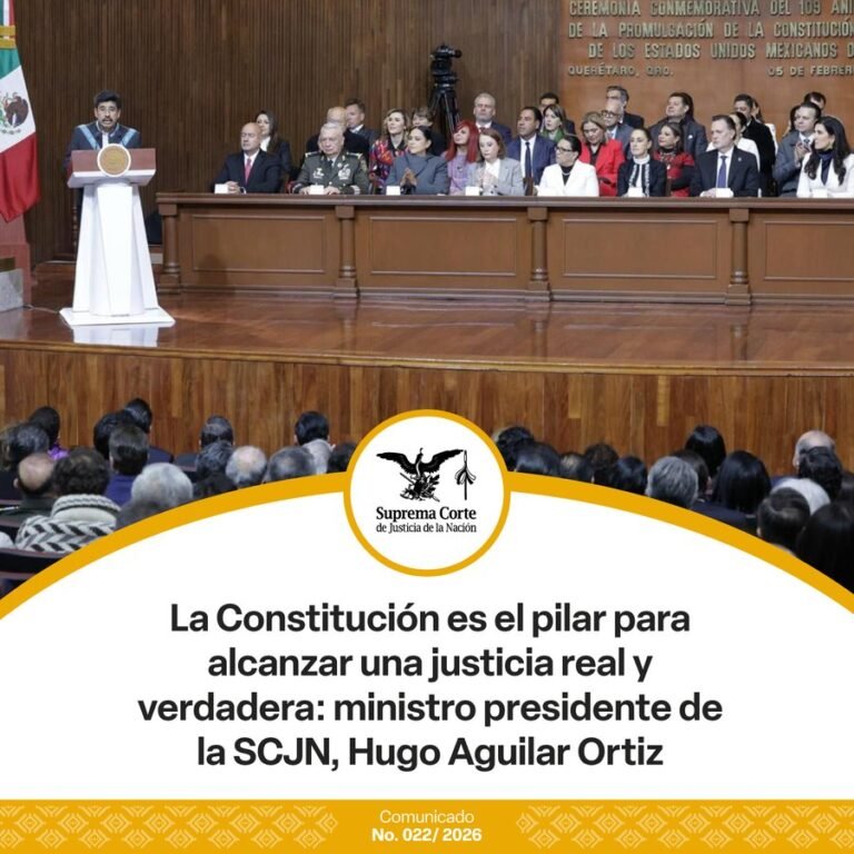 En el 109 aniversario de la Carta Magna, Hugo Aguilar Ortiz, ministro presidente de la SCJN, destacó que la Constitución es el pilar para alcanzar una justicia real y verdadera.