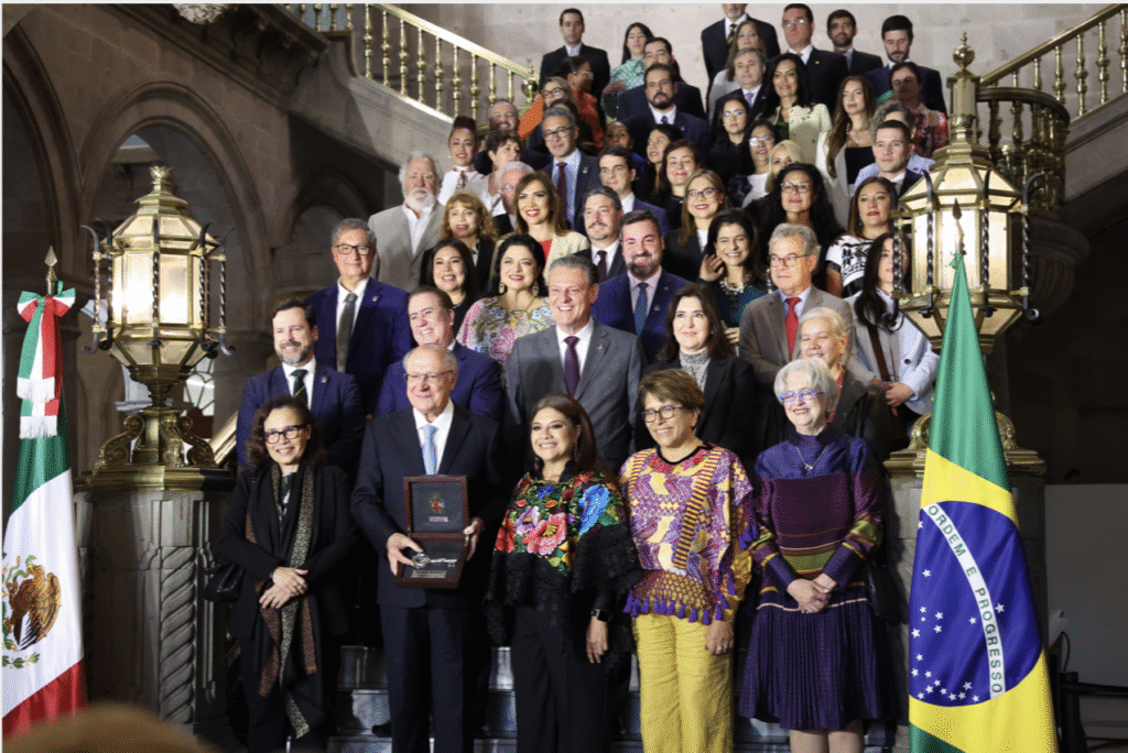 Clara Brugada entrega las Llaves de la Ciudad de México al vicepresidente de Brasil, Geraldo José Alckmin, en un gesto de amistad y entendimiento regional.