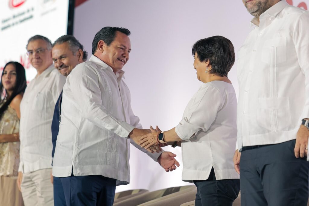 Joaquín Díaz Mena atestigua la entrega del distintivo “Hecho en México” como reconocimiento a una obra ferroviaria construida con manos mexicanas