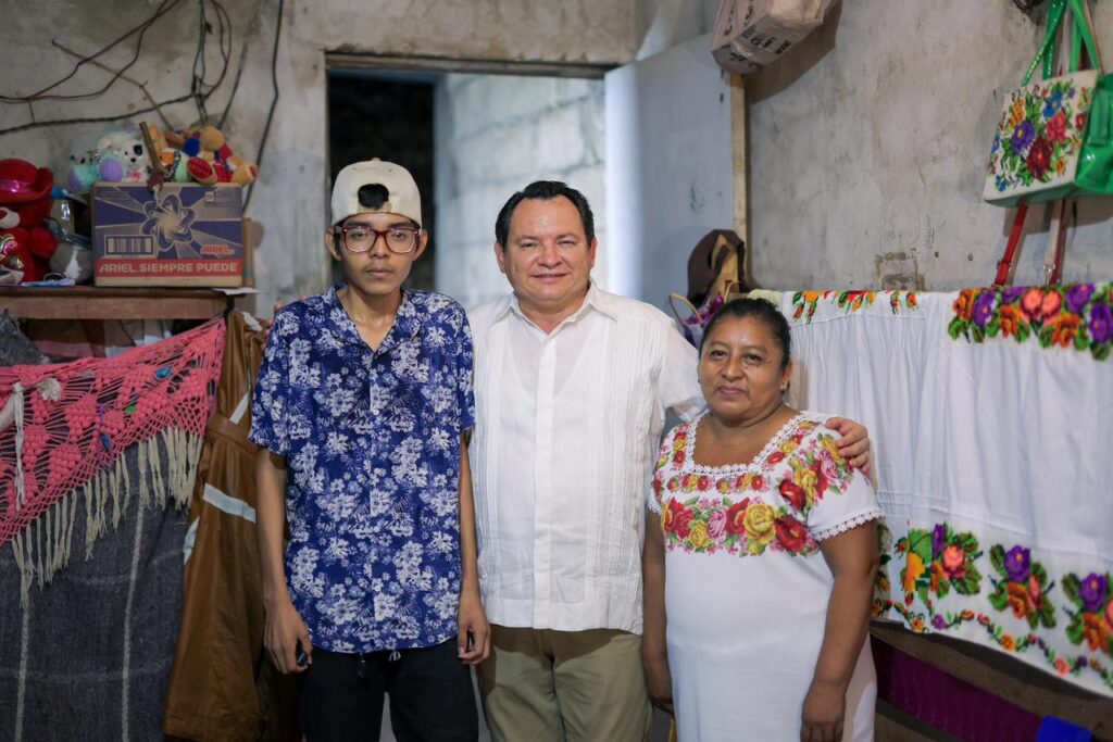 El Gobernador Joaquín Díaz Mena visitó a Anthony Hau Pat, joven de Kinil, Tekax, beneficiario de las Jornadas de Cirugías Extramuros.