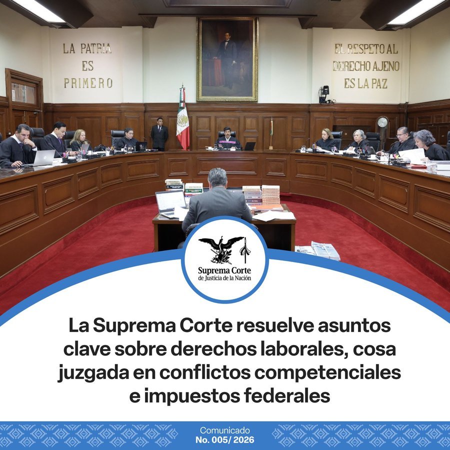 El Pleno de la Suprema Corte de Justicia de la Nación emitió resoluciones que impactan en derechos laborales, conflictos competenciales y en la constitucionalidad de impuestos federales.