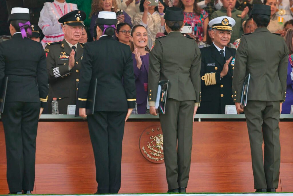 Claudia Sheinbaum encabezó la ceremonia en Campo Marte, reconociendo a mujeres del Ejército, Fuerza Aérea, Marina y Guardia Nacional.