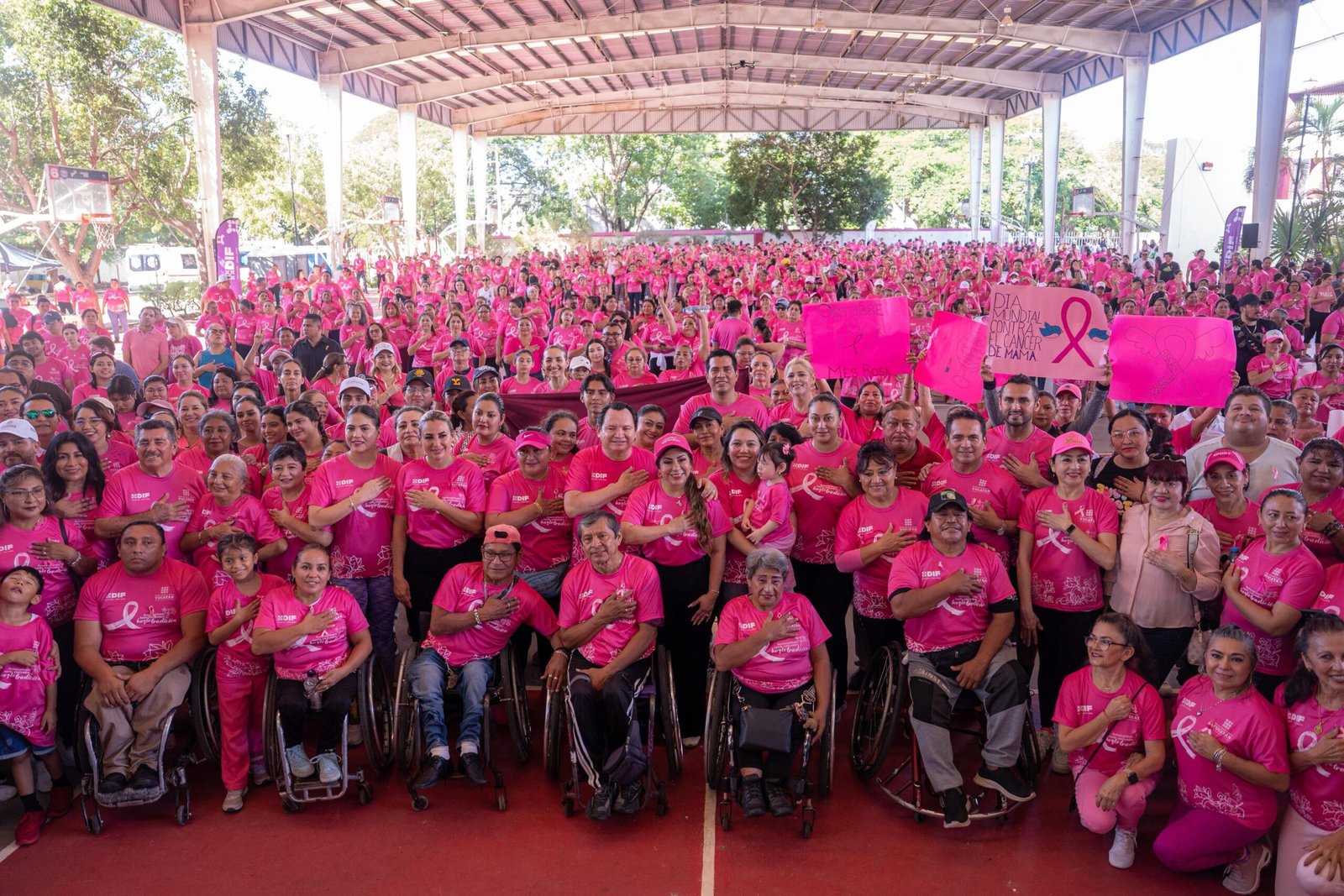 Con un mensaje de esperanza, prevención y unión, el Gobernador de Yucatán, Joaquín Díaz Mena, y la Presidenta Honoraria del DIF Yucatán, Mtra. Wendy Méndez Naal, encabezaron una macroclase de activación física que reunió a más de 2 mil personas en Mérida, como parte de las acciones de concientización por el Día Mundial de la Lucha contra el Cáncer de Mama.