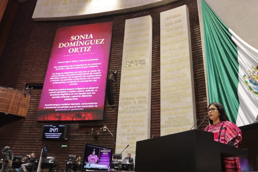 Sonia Domínguez Ortiz, originaria de Tlaxiaco, Oaxaca, pidió conservar, transmitir y difundir la lengua materna como parte fundamental de la identidad cultural y símbolo de resistencia.