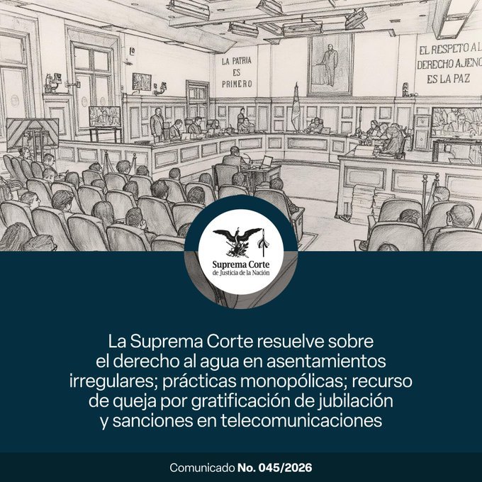 La SCJN resolvió sobre agua en asentamientos, prácticas monopólicas, jubilación y sanciones en telecomunicaciones.
