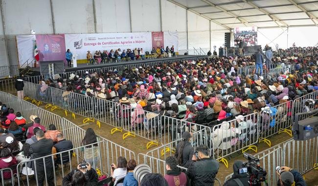 Presidenta entrega títulos agrarios en CDMX y fija meta nacional de 150 mil documentos.