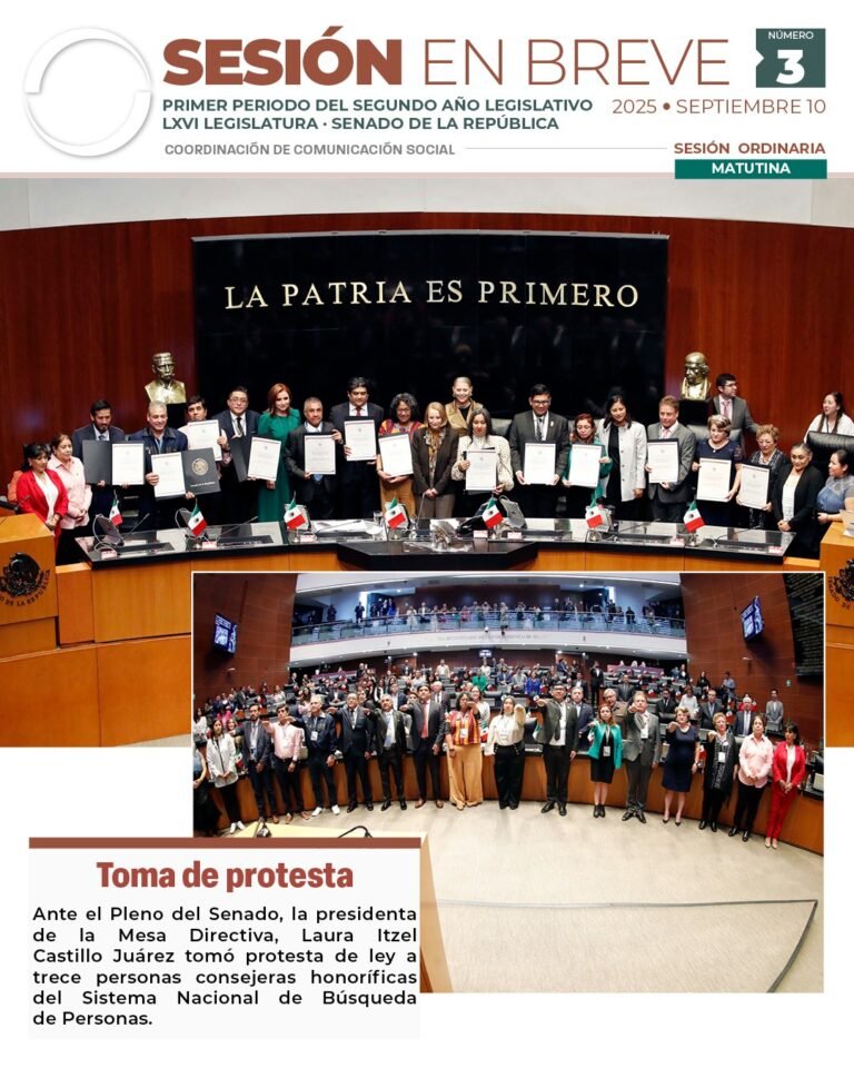 El Senado toma protesta a trece consejeras y consejeros honoríficos del Sistema Nacional de Búsqueda en sesión solemne