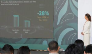 En cuanto a los delitos de alto impacto, la funcionaria detalló que se ha registrado una reducción del 19.25 por cientoentre octubre de 2024 y abril de 2025, al bajar de 636 a 513.6 delitos diarios en promedio. En términos anuales, esta disminución alcanza un 42.8 por ciento respecto a 2018.