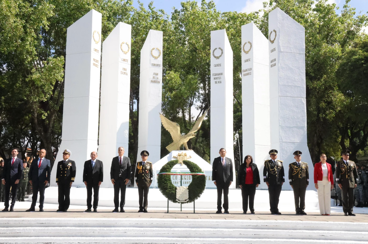 Durante el acto, el General de Brigada Francisco Antonio Enríquez Rojas, comandante de la 25 Zona Militar, encabezó el tradicional pase de lista, nombrando a los cadetes del Heroico Colegio Militar y de la Heroica Escuela Naval Militar que perdieron la vida en defensa de la nación.