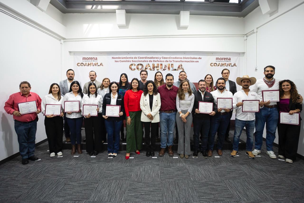 El Comité Ejecutivo Nacional (CEN) de Morena realizó el nombramiento de las y los coordinadores distritales de los Comités Seccionales de Defensa de la Transformación (CSDT) en el estado de Coahuila de Zaragoza, con el objetivo de impulsar acciones de afiliación, distribuir el periódico Regeneración, promover la participación comunitaria y difundir los programas y logros de la Cuarta Transformación.