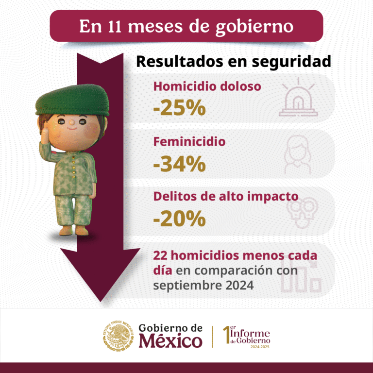 México logra reducir homicidios, feminicidios y delitos de alto impacto en solo once meses