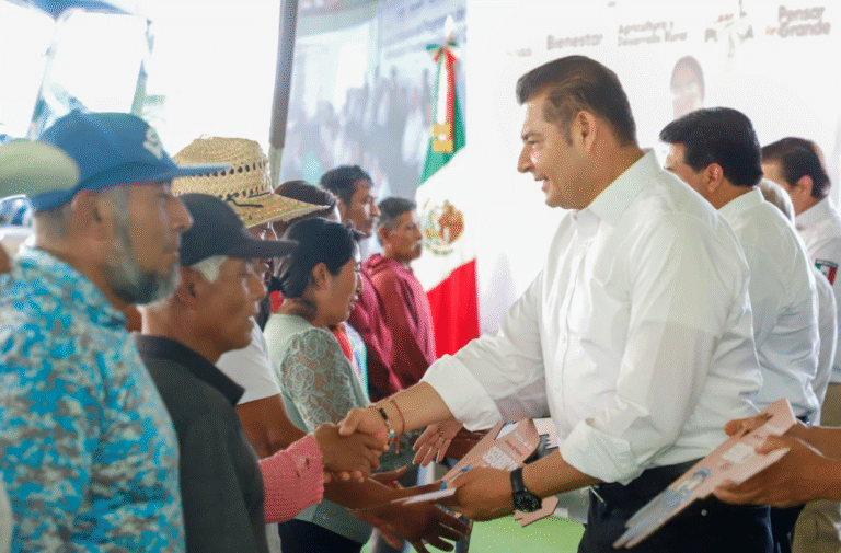 Alejandro Armenta entrega apoyos históricos para productores y obras comunitarias en Tianguismanalco.