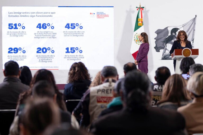 La Presidenta Claudia Sheinbaum Pardo reconoció el papel fundamental que desempeñan las mexicanas y mexicanos en Estados Unidos para el crecimiento económico de ese país.