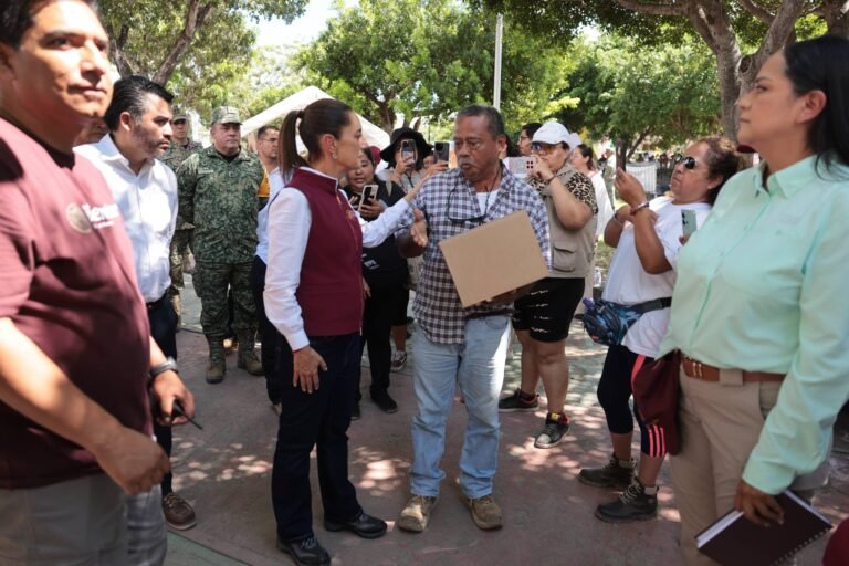 Presidenta Claudia Sheinbaum supervisa limpieza y entrega de apoyos a familias afectadas por lluvias.