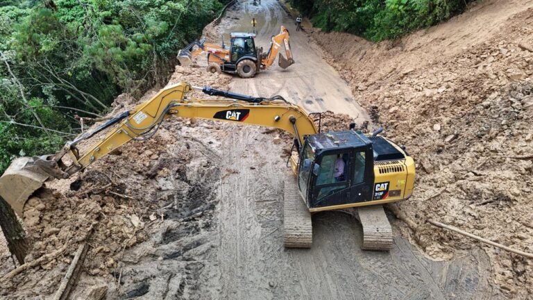 Con maquinaria especializada, autoridades estatales y federales atienden más de 130 kilómetros de vías dañadas por lluvias en Puebla.