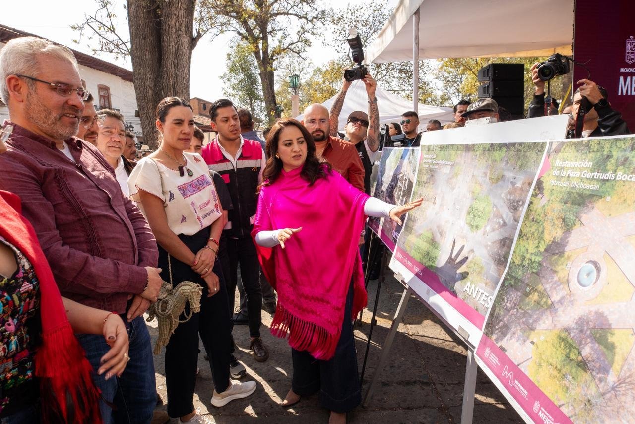 “Este tipo de recuperación confirma que Pátzcuaro se transforma sin perder su esencia, que crece desde sus raíces y se proyecta al futuro con orden, con planeación y con orgullo. Y qué mejor homenaje a esta visión que hacerlo en una plaza que lleva el nombre de una mujer valiente y ejemplar: Gertrudis Bocanegra”, añadió.