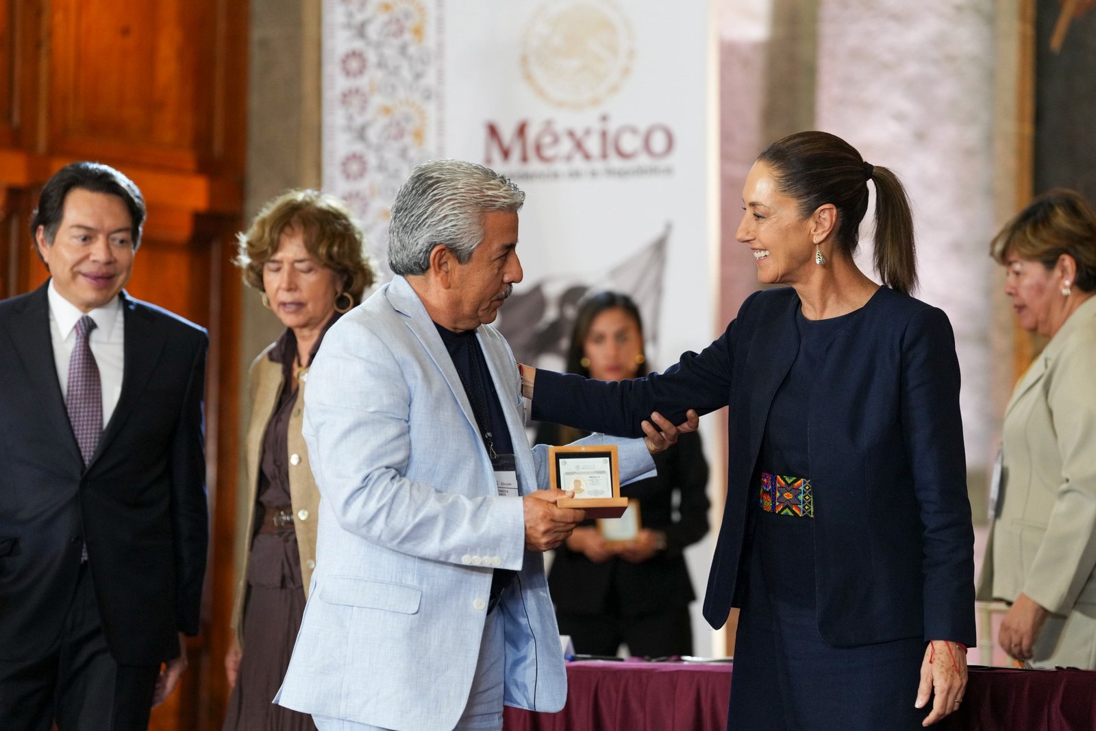 Durante la ceremonia, la Presidenta entregó la medalla “Maestro Manuel Altamirano” a 40 docentes de todo el país por su trayectoria y años de servicio. Entre las y los galardonados se encuentran: María Esther Cruz Franco de Aguascalientes, Gabriel Antonio Mazas Tovar de Baja California, Héctor Daniel Loreto Morales de Baja California Sur, María Catalina Mendoza Ruíz de Campeche, Alma Idalia Siller Morales de Coahuila, Adriana González Velasco de Colima, Cándido César Albores Toledo y Reyna Gálvez Guzmán de Chiapas, Óscar Tello Acuña de Chihuahua, María del Socorro Niño Ibarra de Ciudad de México, Víctor Manuel Rocha Núñez de Durango, Josefa Granados Carbajal del Estado de México, Adriana Gutiérrez Meza de Guanajuato, Isidro Alarcón Beltrán de Guerrero, entre otros.