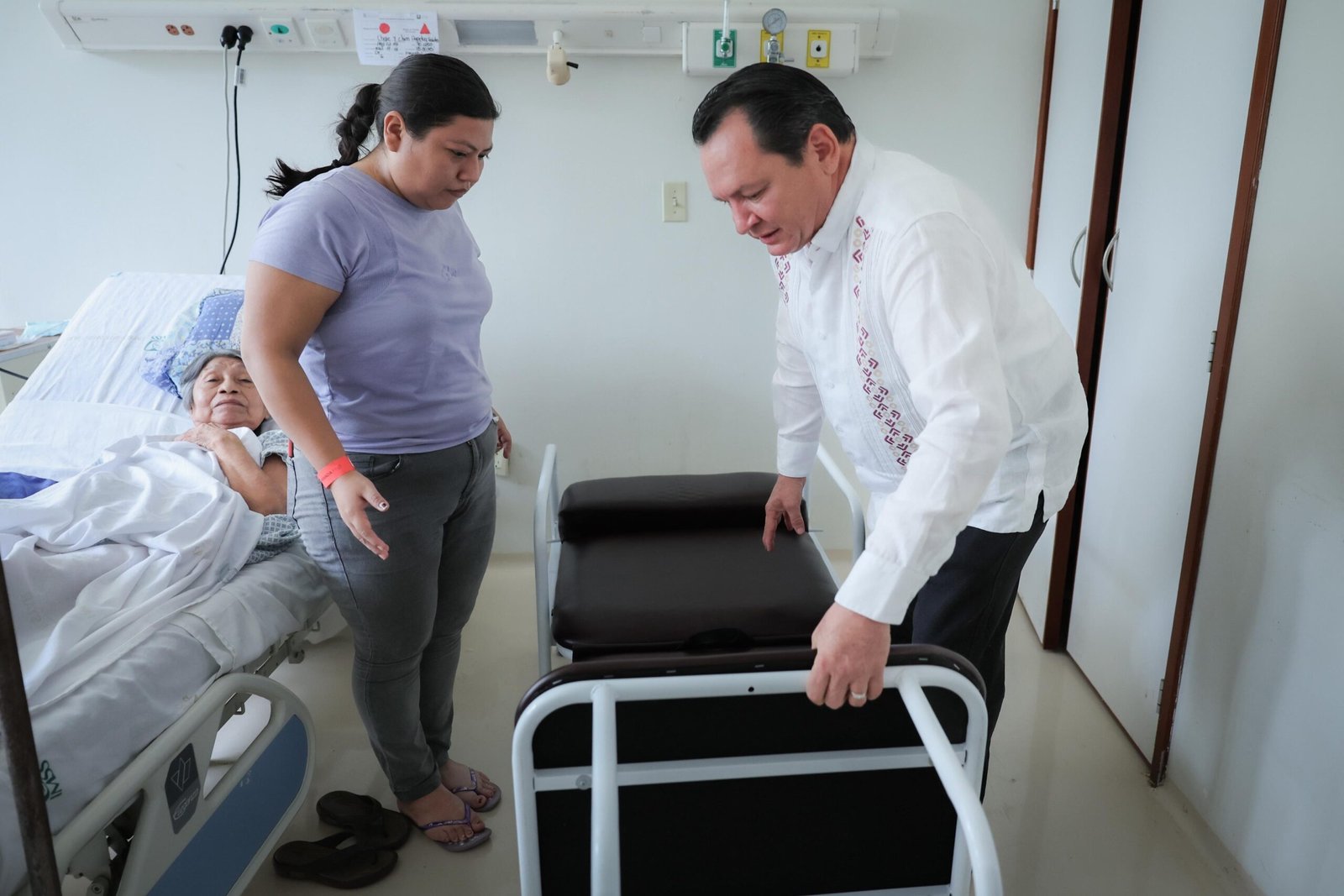 Durante la visita, Díaz Mena conversó con Yolanda Cua Chalé, quien acompaña a su madre, Perpetua Chalé y Chim, en su recuperación tras una cirugía de hernia. La ciudadana compartió su experiencia y reconoció la diferencia que representa contar con una silla cama. “Antes pasábamos la noche en sillas incómodas, ahora podemos descansar mejor y estar más cerca de nuestros familiares”, comentó.