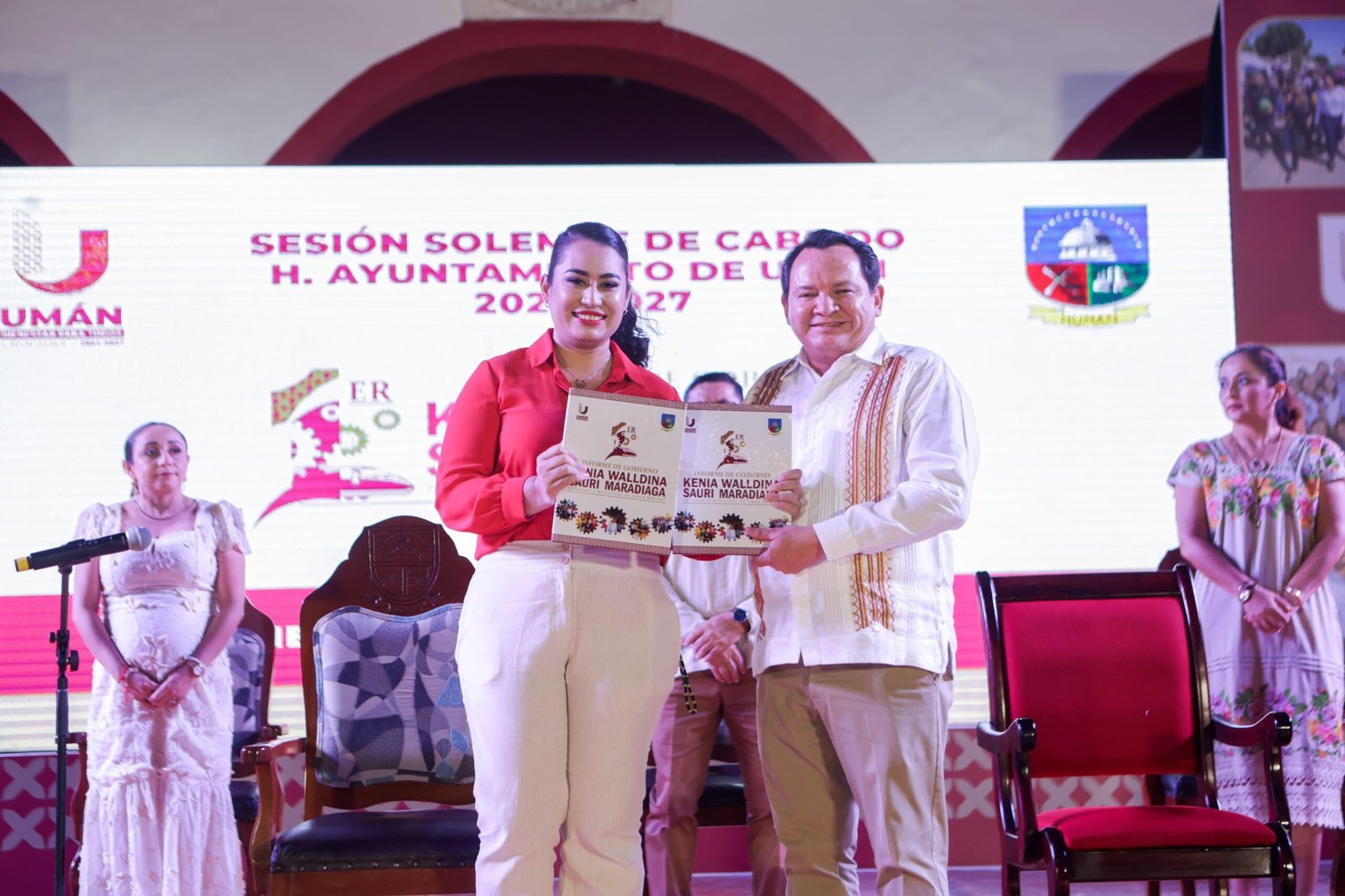 Desde los bajos del Palacio Municipal de Umán, el gobernador de Yucatán, Joaquín Díaz Mena, participó en la sesión solemne del Primer Informe de Gobierno de la alcaldesa Kenia Sauri Maradiaga, donde reconoció los avances alcanzados en infraestructura, educación y bienestar social, y reafirmó el compromiso del Gobierno del Estado con el desarrollo del municipio. “Gobernar es escuchar, dar la cara y comprometerse con hechos”, expresó el mandatario ante cientos de habitantes reunidos en el corazón de la ciudad.