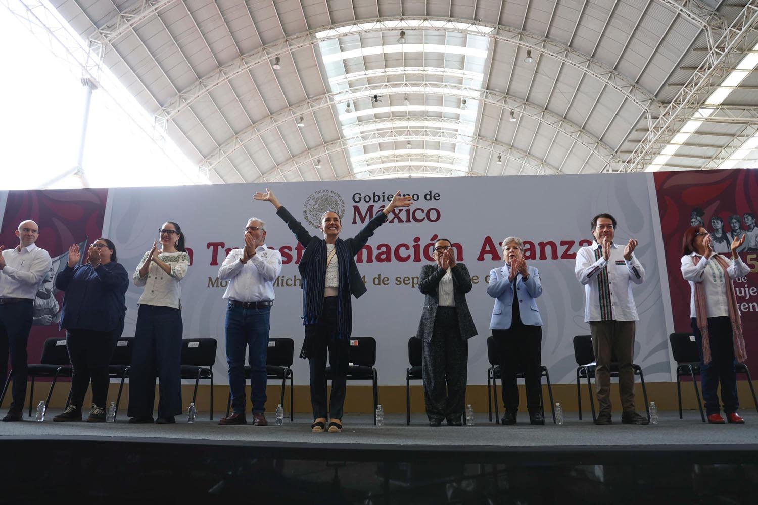 En infraestructura, se modernizará el puerto Lázaro Cárdenas, se repavimentarán todas las carreteras federales, se recuperará el lago de Pátzcuaro, se construirán preparatorias en Morelia y Uruapan, un nuevo plantel de la Universidad Nacional Rosario Castellanos, 19 CECIs, un Centro LIBRE para mujeres en cada municipio, y se fortalecerán hospitales en Maruata, Arantepacua, Paracho y Uruapan, además de un nuevo hospital en la zona p’urhépecha.