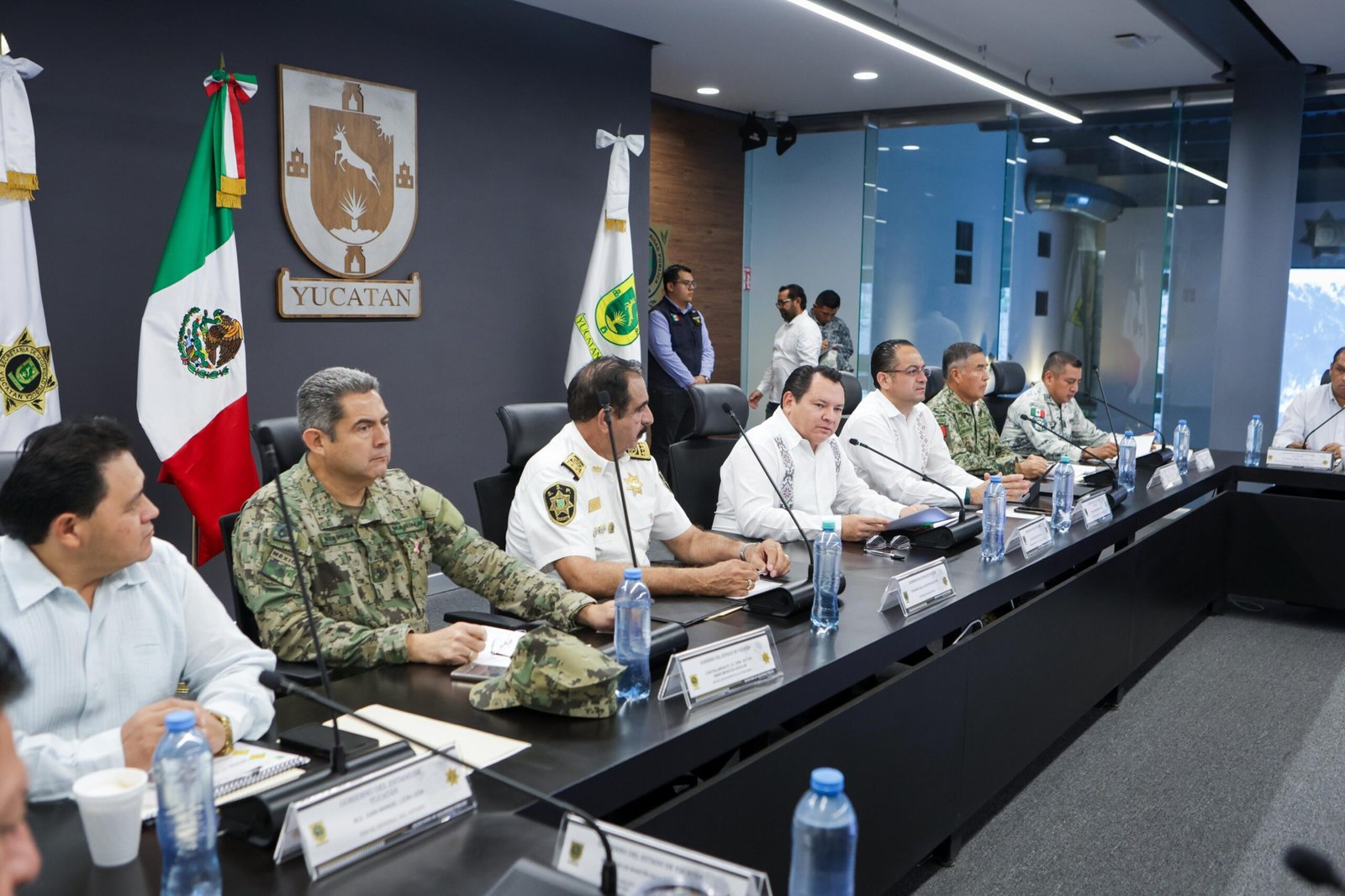 En la mesa de trabajo participaron el secretario general de Gobierno, Omar Pérez Avilés; el contralmirante Víctor Omar Mendoza Aguilar, jefe de Estado Mayor de la Novena Zona Naval; el general de brigada Bernardo Reginaldo Reyes Herrera, comandante de la 32/a Zona Militar; y el fiscal general del Estado, Juan Manuel León León. También estuvieron presentes el teniente coronel Jaime Eliud González Escamilla, segundo comandante del 28/o Batallón de la Guardia Nacional; el secretario ejecutivo del Sistema Estatal de Seguridad Pública, Carlos Martín Pacheco Medina; y representantes de diversas instancias federales, estatales y municipales.